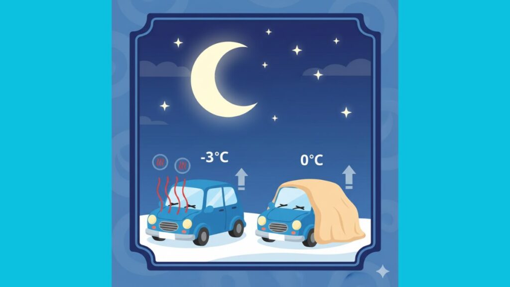 「冬の 寒い夜に、車が「放射冷却」で キンキンに 冷たくなって、